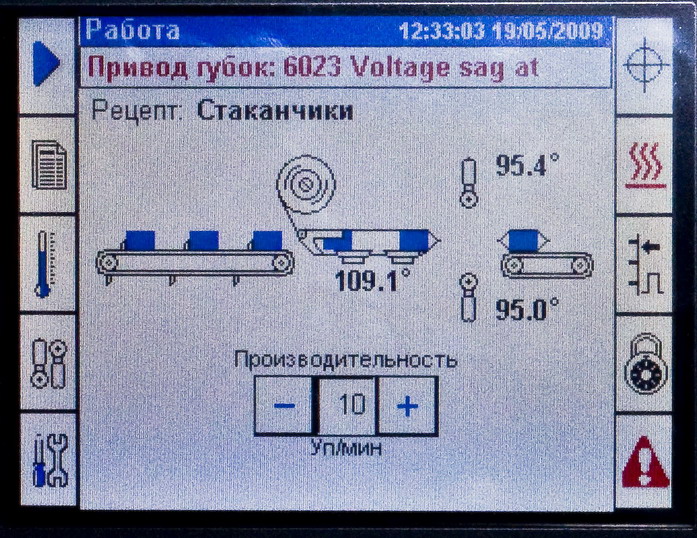- Возможность задания температуры сварки паяльников в зависимости от производительности (заранее задаются значения температуры при минимальной и максимальной производительности для данного сочетания продукта и плёнки)