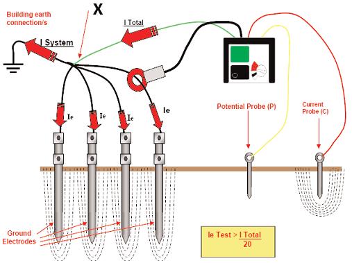 Клещи ICLAMP могут измерять ток через заземлитель начиная от 5% от общего тестового тока системы другими словами конкретный заземлитель может иметь сопротивление до 20 раз! больше чем все ЗУ в целом , но всё равно будет измерен.