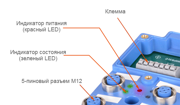 Общий вид и назначение индикаторов распределительных коробок серии PT компания Autonics с 5-контактными разъемами M12 показаны на рис. 3–6.