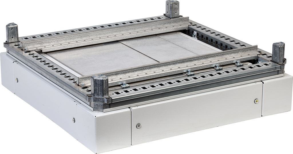 Монтажная панель устанавливается в крайнем положении задней части шкафа FORMAT IEK® (заподлицо с каркасом), что позволяет оптимально использовать каждый сантиметр внутреннего пространства.