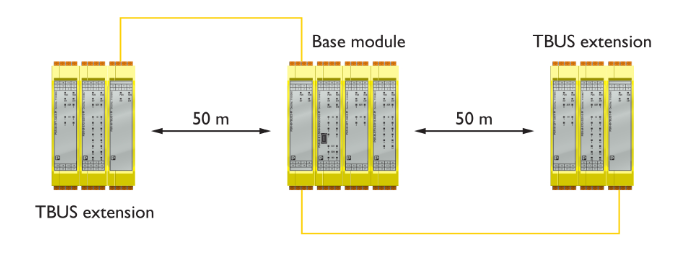 В частности, современное оборудование с распределенными системами ввода/вывода часто имеет в своем составе разнообразные датчики и исполняющие механизмы в роли функций безопасности, непосредственно не подключаемых к базовым модулям безопасности. Для этих специальных функций безопасности может использоваться отдельный модуль расширения. Такой подход физически разделяет локальную шину системы PSRmodular и использует необходимый протокол для его реализации на децентрализованных системах с возможностью установки пяти отдельных сегментов через каждые 50 метров в пределах одной установки (Рис. 2).